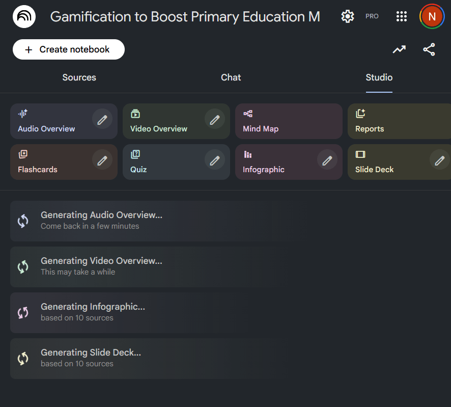 وأفضل ميزة فيه بالنسبة لي هي تحويل المصادر إلى أشياء مختلفة مثل ملخصات صوتية أو فيديو أو يقدر يصنع لك عرض تقديمي. في المذاكرة خاصية الـQuiz & Flashcards مفيدة جداً وبإمكانك تخصيص طول النصوص و صعوبتها.