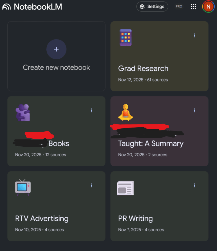 قبل كتابة أي تدوينة أو بحث للجامعة أرفع كل مصادري “مقالات و دراسات و ملاحظاتي الخاصة” (متاح للنسخة المجانية 50 مصدر لكل مجلد والمدفوعة حتى 300 مصدر) إلى NotebookLM. ثم بدل ما أقرأ كل المصادر بمفردي أسأله مباشرة: